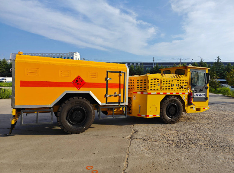 德瑞FCB-5是一種緊湊型具有5噸運載能力的礦用無軌爆破器材運輸車,配置前橋擺動裝置,能應(yīng)用于3.5×3.5米以上的地下礦山巷道運輸。