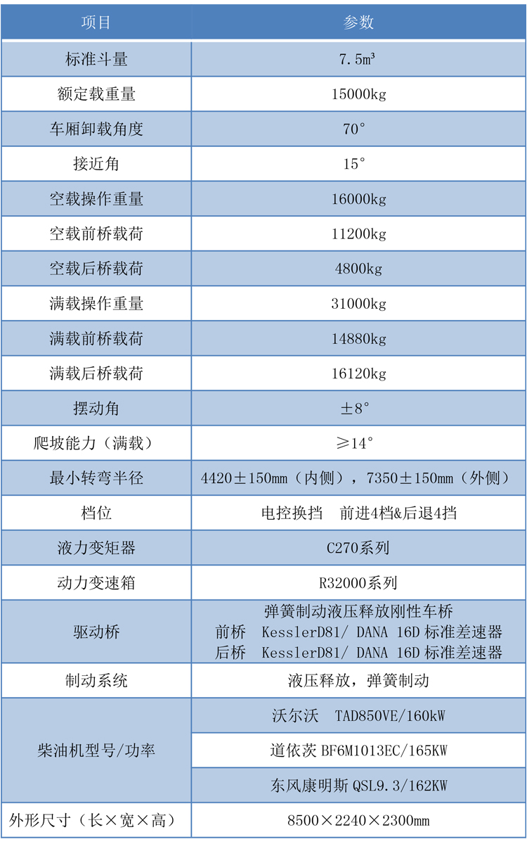 主要技術規格參數